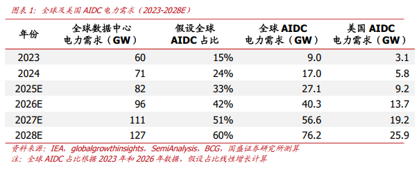 25-26年全球AIDC已进入“集中建设、集中上电”的窗口期,新增算力对应的基础设施规模显著放大。全球AIDC电力需求将迎来爆发式增长:据SemiAnalysis预测,预计2026年攀升至约40GW,中长期AIDC将主导电力增量市场。我们预测到2028年,全球AIDC电力需求将高达76GW,GW级集群交付将成为行业常态。
