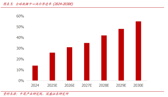 1.1.2 液冷渗透率:功率密度升高,液冷采用率快速提升