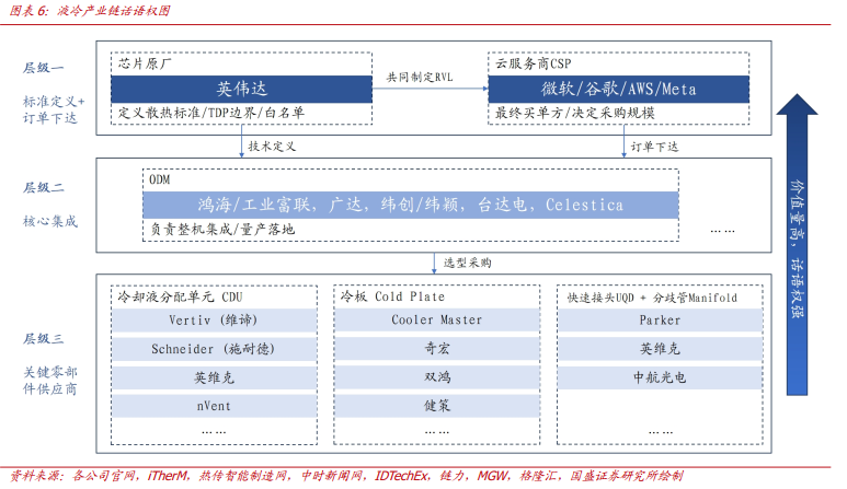液冷并非单一零部件产品,而是贯穿芯片、服务器与数据中心的系统级工程,其产业链参与方众多,但话语权集中度高。从决策链条看: