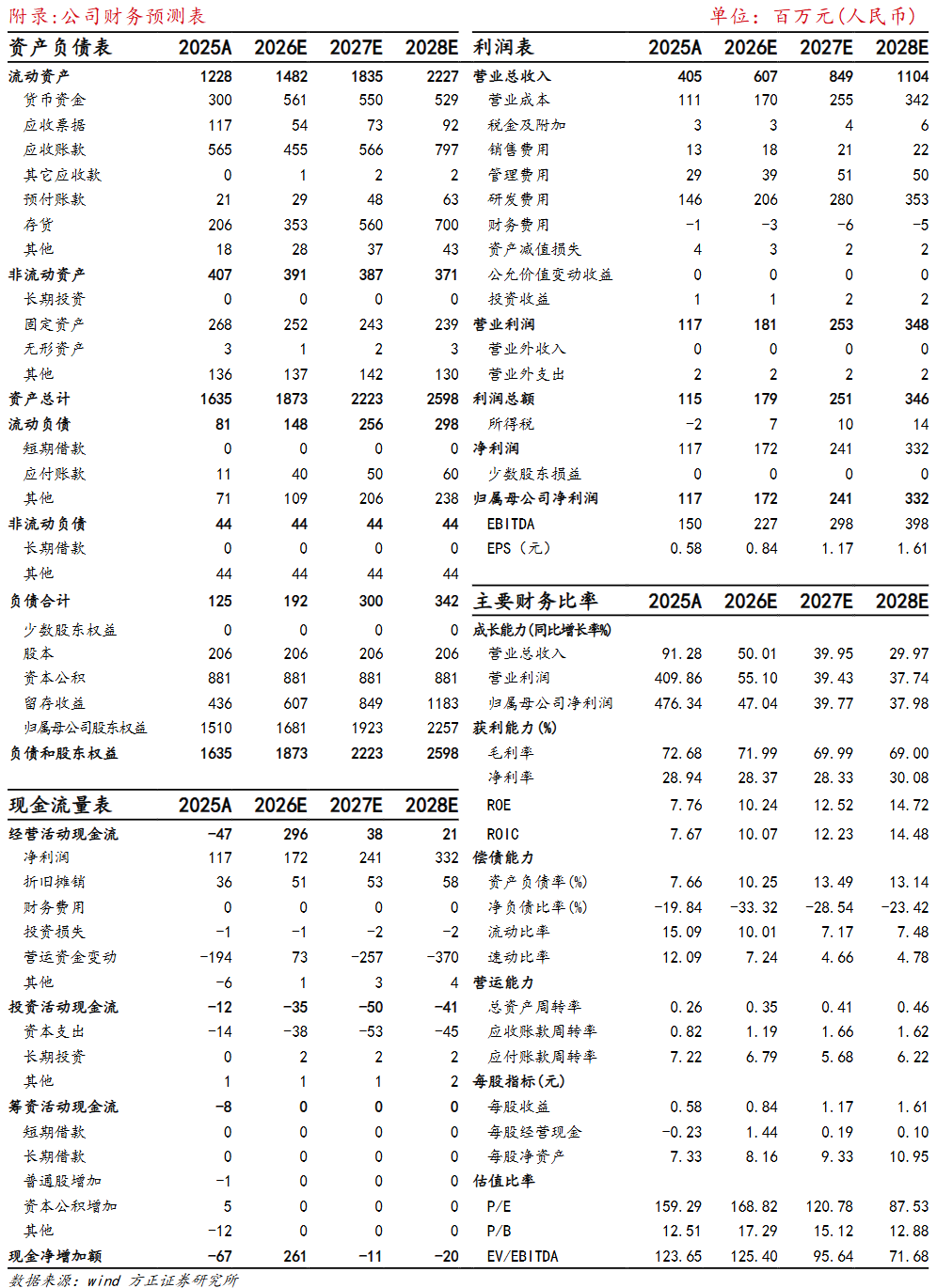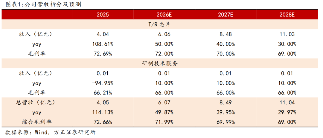 盈利能力显著提升,维持高研发投入。受益于公司订单规模效应释放所带来的成本结构优化,公司盈利能力显著提升,25年公司毛利率为72.68% (同比 8.78pct)。同时,公司加大费用管控力度,25年公司销售费用率为3.22%(同比-1.89pct),管理费用率为7.11%(同比-6.53pct),盈利能力有望持续提升。公司持续加大研发投入,25年研发费用为1.46亿元(同比 66.14%)。25年公司新研制芯片数量300余款,以多通道多波束模拟波束赋形芯片、低压GaN系列芯片、单片式多功能芯片、硅基延时多功能芯片、低成本前端封装产品等为代表,提供具备竞争优势的解决方案,多款新产品通过客户验收并进入量产,持续强化产品核心竞争力。