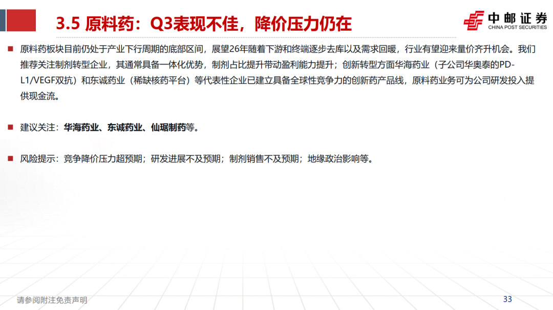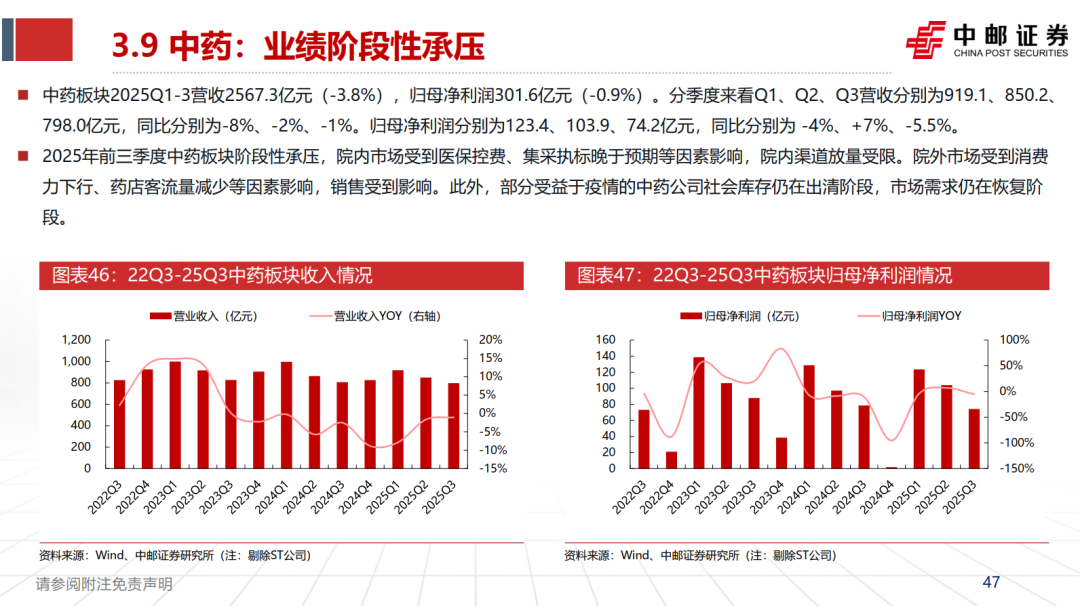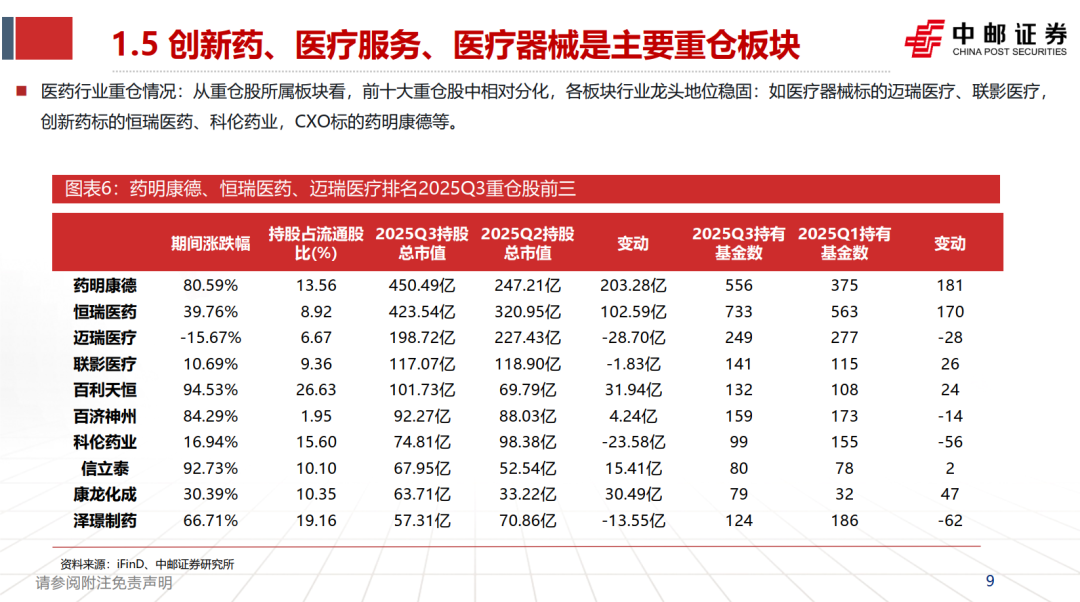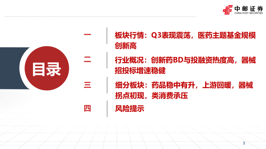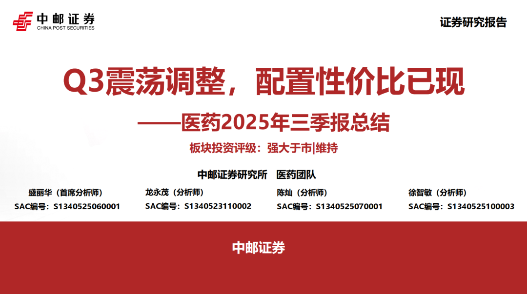 医药2025年三季报总结:Q3震荡调整,配置性价比已现【中邮医药|三季报总结】