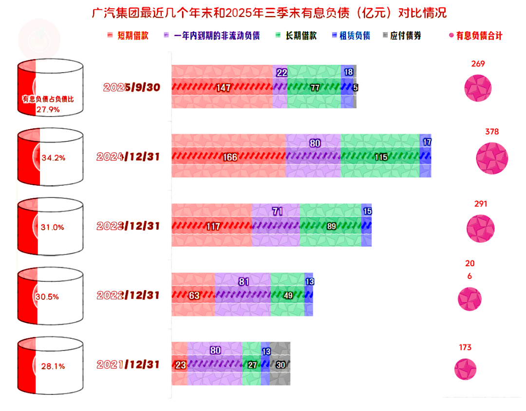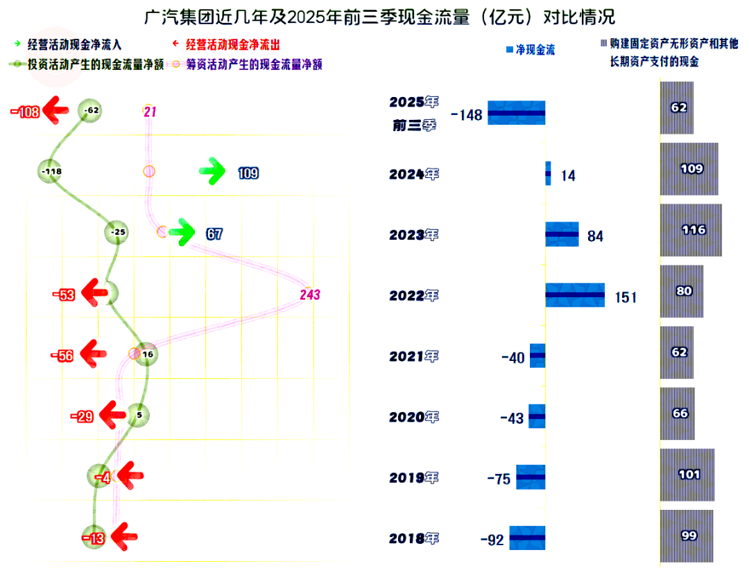 2025年三季度末,广汽集团的有息负债规模在大幅下降,这正是导致其“缩表”(总资产下降)的原因之一。控制支出,回收资金,观察着来投入,甚至可以通过“捡死鱼”的方式,在行业调整期来一轮“非常规”发展。