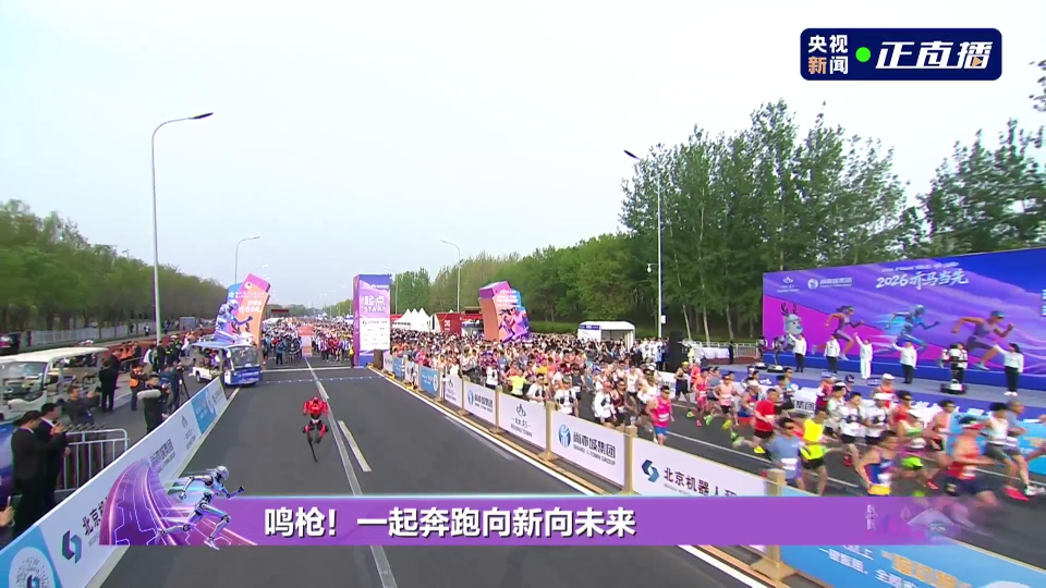4月19日7:30,2026人形机器人半程马拉松赛在北京亦庄鸣枪开跑。