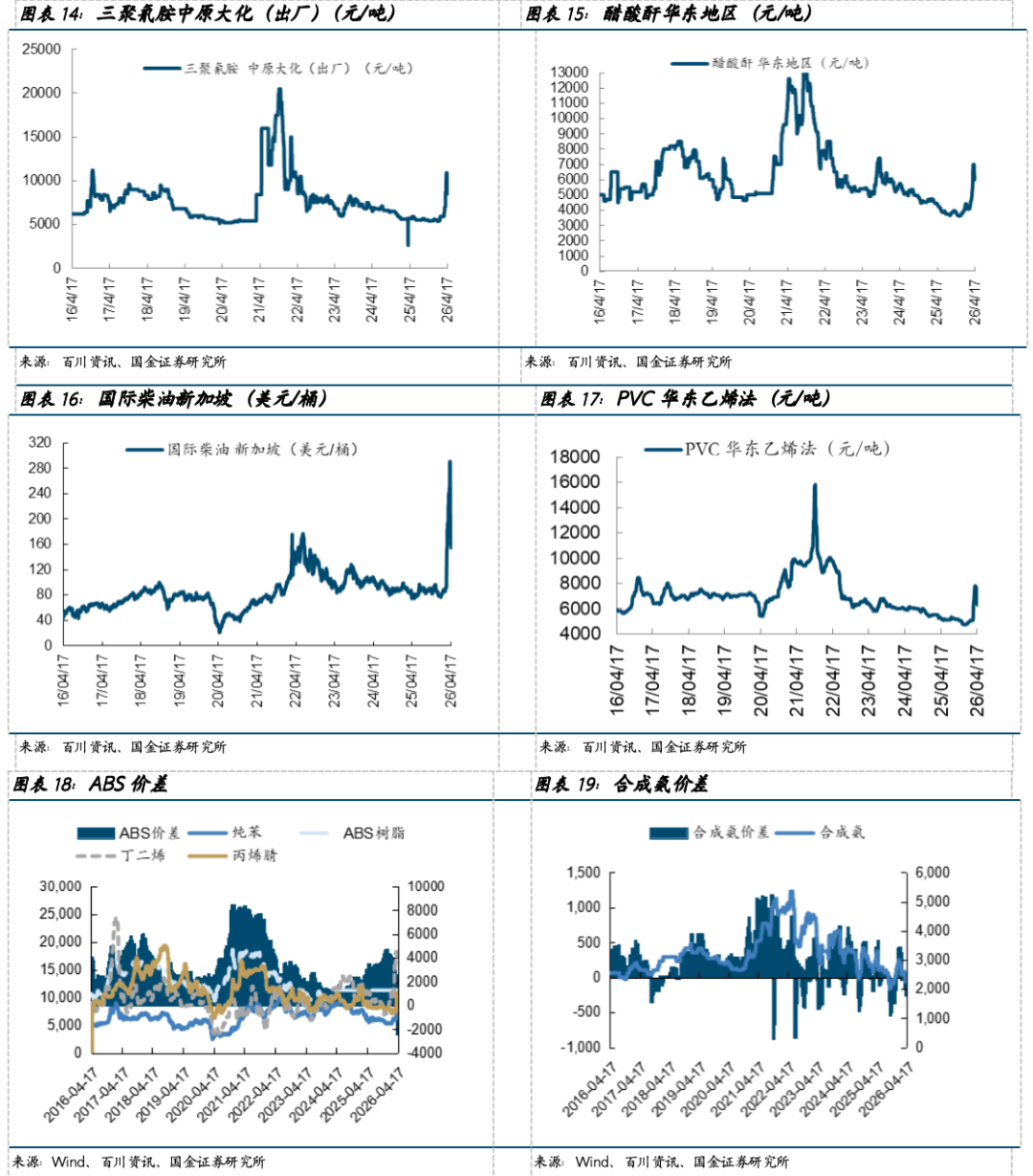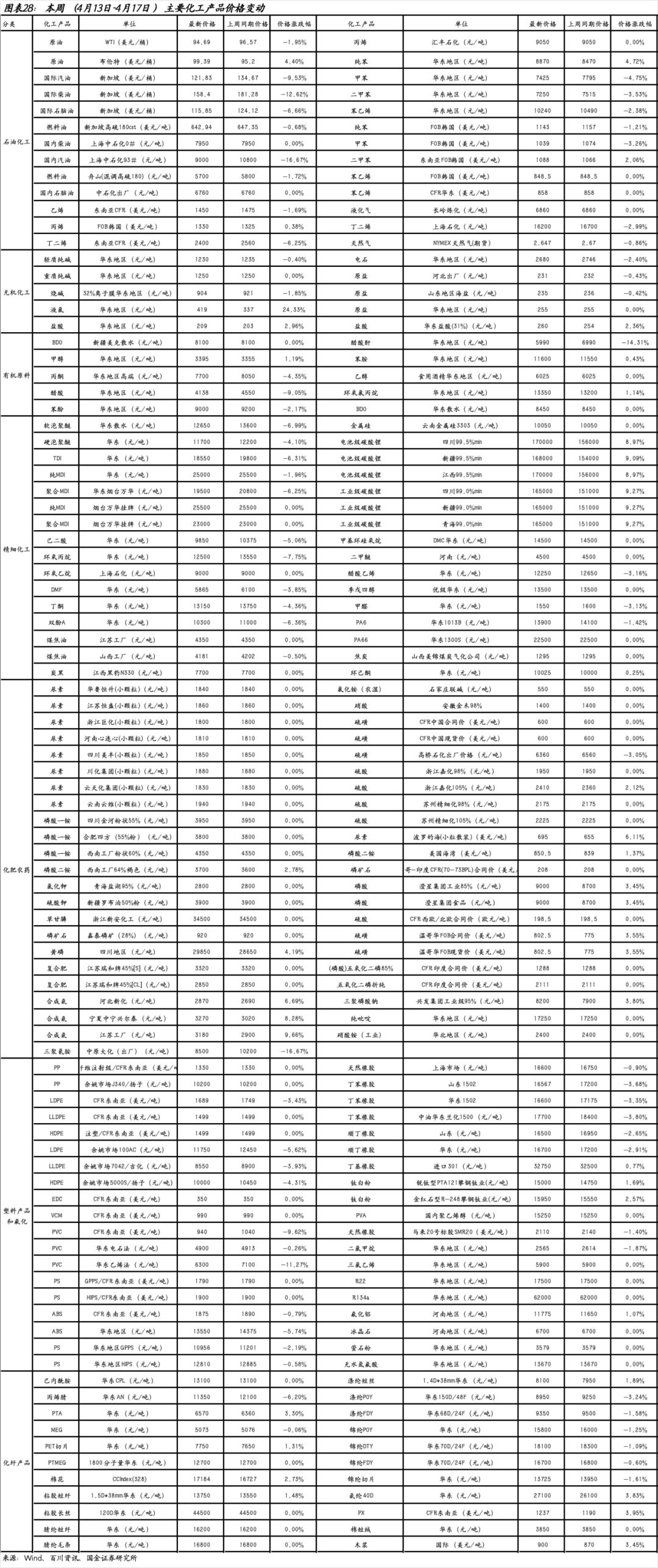 基础化工行业,本周最大边际变化在于霍尔木兹海峡的开放,若持续开放,原油端的冲击将明显弱化,板块有望回归中长期向上通道;另外,本周危险化学品目录新增多个化学品,包括2-硝基-3-甲基苯甲酸、3-氯丙炔、2-碘酰基苯甲酸,建议重点关注近期有边际变化的2-硝基-3-甲基苯甲酸,该方向对应上市公司或有较高的赔率;除此之外,化工品涨价继续,本周包括轮胎、高含氢硅油、氨纶、粘胶涨价。地缘扰动方面,本周我们观察到特朗普“以打促谈”策略已初见成效,施压策略包括特朗普宣布封锁霍尔木兹海峡、美对伊启动“经济狂怒”行动,从伊朗的表态看,其倾向促和,比如:报道称伊朗考虑暂停霍尔木兹航运,为新一轮谈判争取空间,再比如:伊朗总统称愿意继续谈判。AI行业边际变化,本周进入业绩验证期,产业链的多家公司业绩表现亮眼,包括中际旭创、台积电、沪电股份、佰维存储、瑞芯微,我们认为该产业链处于加速兑现通道,建议持续重点关注。作为对比,贵州茅台上市以来首现年度营收下滑,这可能市场风格进一步强化的标志性事件。AI产品端,潜在爆款在不断推出,比如:Hermes Agent爆火、阿里腾讯各自发布3D世界模型,在此背景下,需求爆炸,算力吃紧,比如:三个月内全球Token使用量暴增250%,再比如:Claude变更企业版定价,按算力消耗计费;供需双好的背景下,AI基建的确定性也将越来越高,未来更多环节或卡脖子,近期已经看到诸多迹象,比如:美国光通信龙头Lumentum预计两个季度内将售罄2028年产能、群联CEO表示NAND缺货或持续10年、知名半导体分析机构SemiAnalysis近日称CPU正面临"极其严重的产能短缺"。投资层面,我们看到AI板块持续走强,背后原因在于当下以及未来的基本面更加确定,往后看我们继续看好科技材料投资机会;除此之外,短期看虽然周期板块或将继续受到油价波动的影响,但扰动之后板块或迎来较佳的布局时点