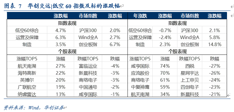 四、华创交运|低空60指数:本周上涨4.7%,全年下跌0.7%
