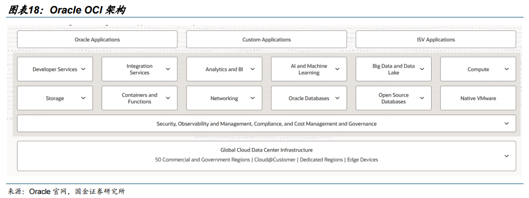 从企业软件应用厂商转型为高性能AI云服务商。公司历史上主营企业级关系型数据库与IT管理软件,长期占据全球企业软件市场的主导地位。近年来,面对大模型爆发带来的海量计算需求,公司全面发力第二代云基础设施(OCI),核心业务加速向AI算力租赁及云基础设施服务拓展。凭借专为大模型集群训练优化的低延迟、高带宽底层网络架构,以及规模化部署的核心GPU算力储备,公司正突破原有核心软件业务边界,实质性切入全球头部大模型厂商的底层智算基础设施供应链体系。