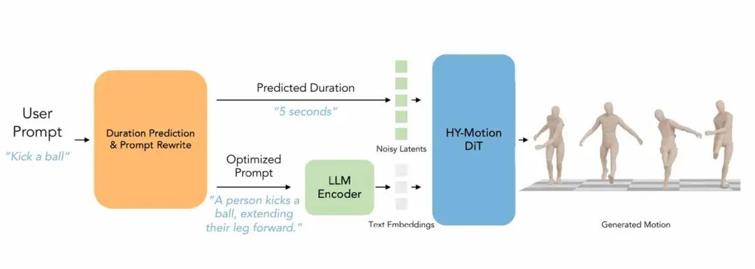 用户的输入往往很随意(比如“跳个舞”),但模型生成需要精确的语义与时序引导。为此,混元团队设计了一个专门的LLM Prompt Engineering模块来做用户Prompt改写及动作时长估计,类似于充当“动作导演”的角色。