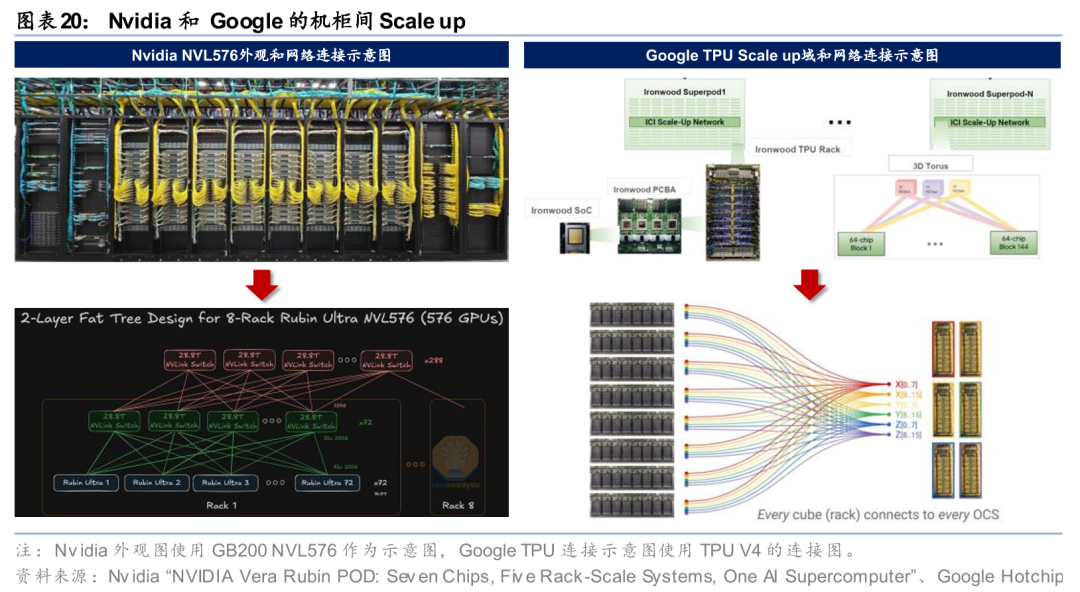 Scale up域:根据Lumentum的三阶段划分,从阶段1开始,OCS有望起到机柜间Scale up的补充作用,并在柜内光互联阶段发挥更重要的作用。我们认为机柜间Scale up和Google Ironwood集群网络具备一定的相似性,OCS可以构建灵活高效的Scale up域,适配动态训练任务流量需求。