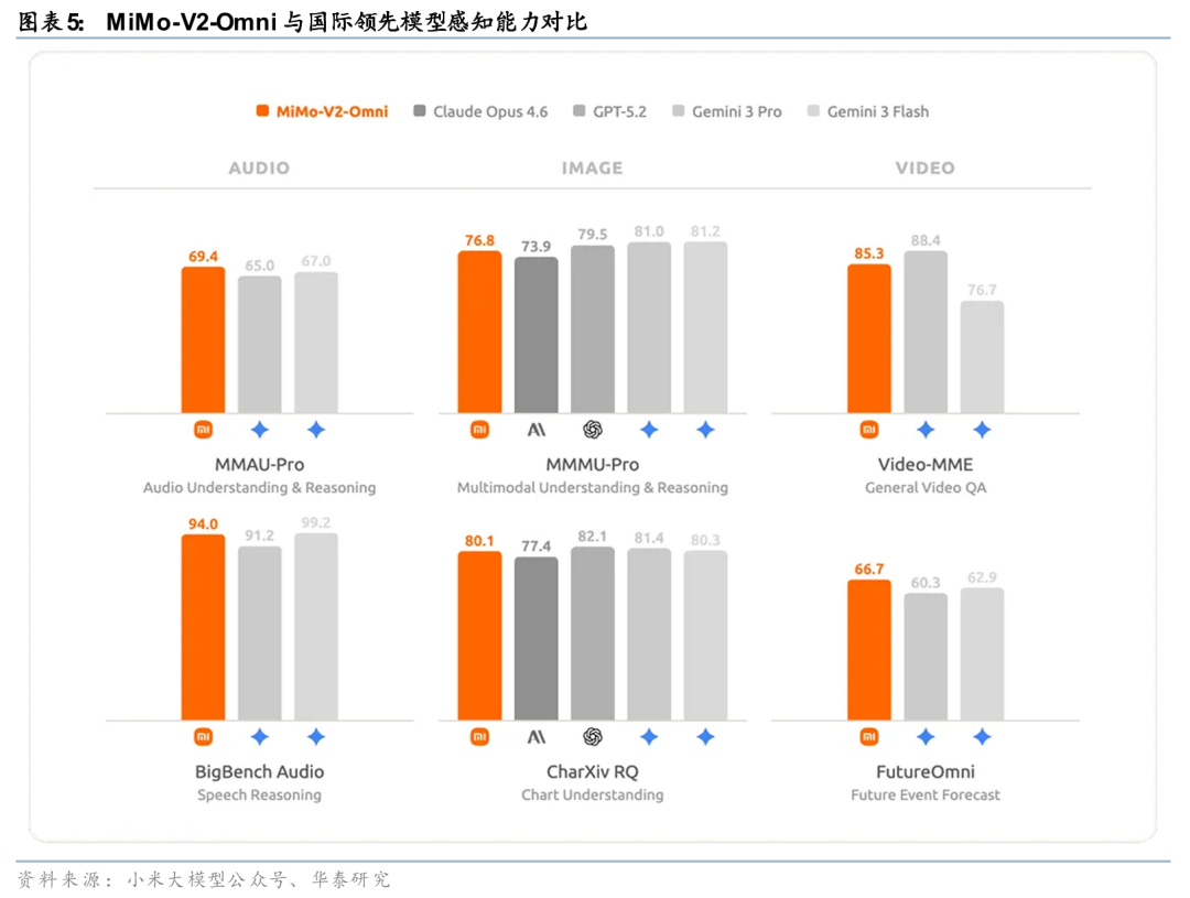 多模态底座叠加终端入口为端侧Agent落地奠定基础。在模型体系构建基础上,小米进一步将能力与终端生态结合。据小米官方微信公众号披露,上述模型能力将服务于其终端设备与AIoT生态,通过统一模型底座实现语音、视觉与文本能力在实际场景中的协同调用。从路径上看,多模态能力提供感知基础,Agent能力负责任务执行,而终端入口与系统权限则提供落地环境与数据闭环,为后续端侧Agent的实际应用奠定基础。该模式体现出模型能力与硬件生态协同推进的特征。