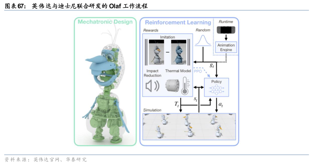 英伟达在GTC 2026进一步扩大物理AI联盟生态版图,全球化合作体系持续完善。自动驾驶领域,比亚迪、现代、日产、吉利正式加入RoboTaxi Ready平台,与奔驰、丰田、通用等国际车企形成强强联合,生态阵容持续强化;同时公司与Uber达成战略合作,加速无人驾驶车辆在全球多城市规模化落地与商业化运营。工业机器人领域,英伟达与ABB、KUKA等全球龙头深化协同,推进物理AI模型在智能制造产线的规模化部署与落地应用,赋能工业场景智能化升级。GTC 2026现场,英伟达与迪士尼联合研发的Olaf机器人正式亮相,该产品搭载Jetson系列芯片,依托Omniverse平台完成全流程仿真训练,充分验证公司在物理仿真、具身智能领域的技术实力与工程化能力。