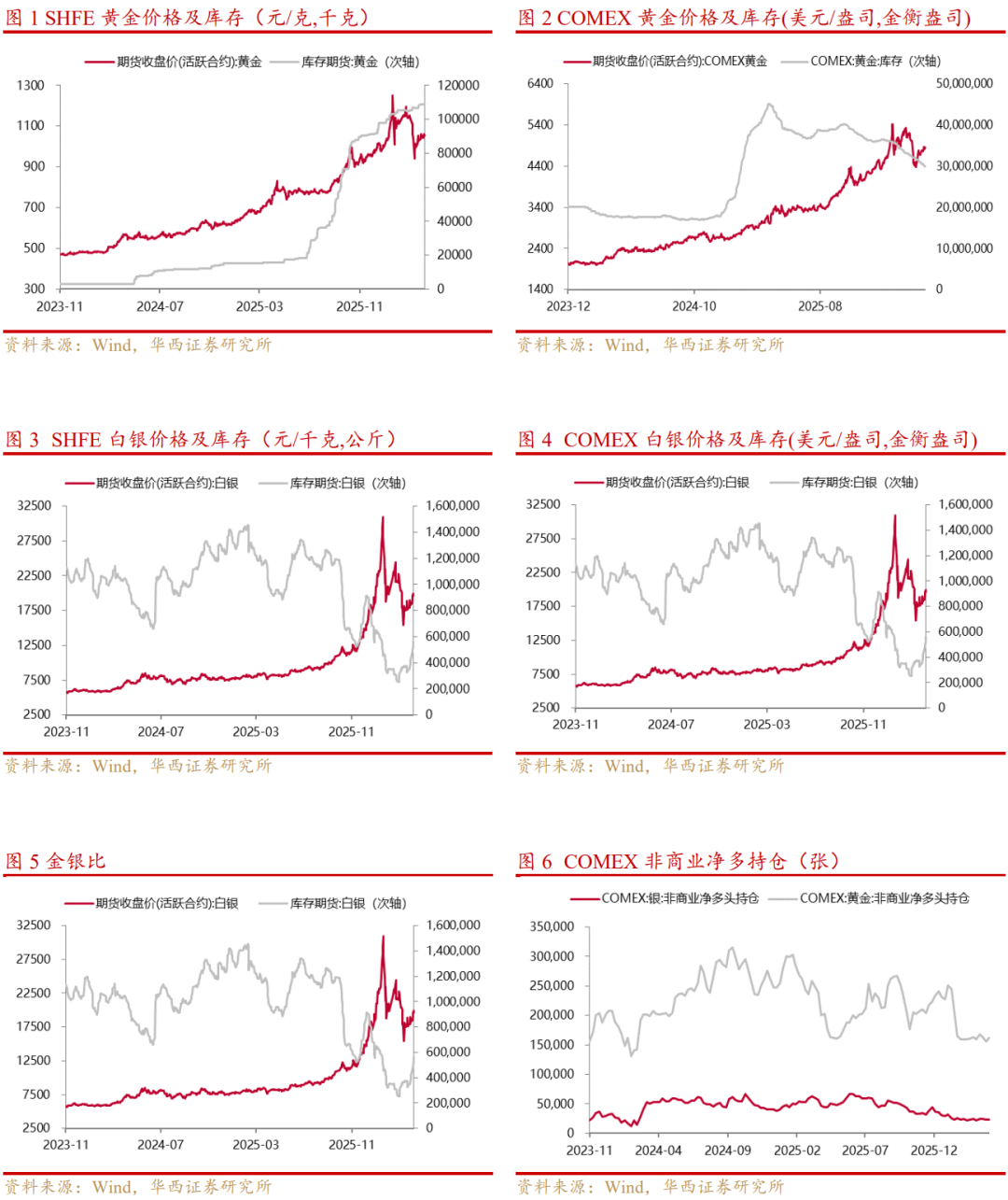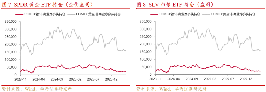 本周金银比下跌4.52%至59.92。本周SPDR黄金ETF持仓增加263,644.30金衡盎司,SLV白银ETF持仓增加633,652.30盎司。