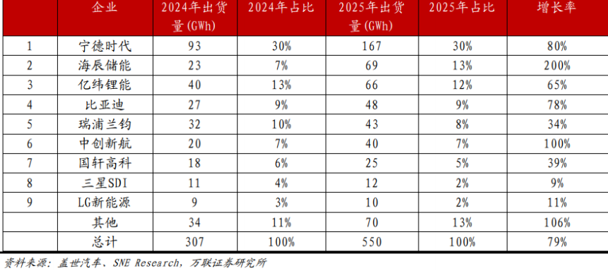 如上图所示,光储笔记注:上述数据中宁德时代的2025年储能销售量为121GWh,同比增长29.13%,远低于全球储能电芯出货增速。故而,上述数据可能不完全准确,仅供参考。