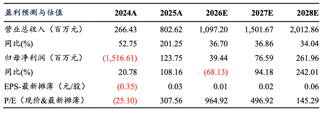 盈利预测与投资评级:考虑到公司 AI for Science业务尚处于兑现早期,我们将公司2026-2027年收入预期由12.6/19.6亿元下调至11.0/15.0亿元,同时预测2028年收入为20.1亿元,当前市值对应 PS 估值分别为 37/27/19X。公司作为行业龙头,技术壁垒深厚且盈利模式验证成功,维持“买入”评级。