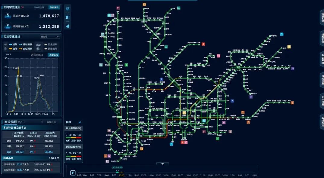 推演能力突破:全网区间断面客流推演精度超90%,支持秒级个体级乘客出行模拟。