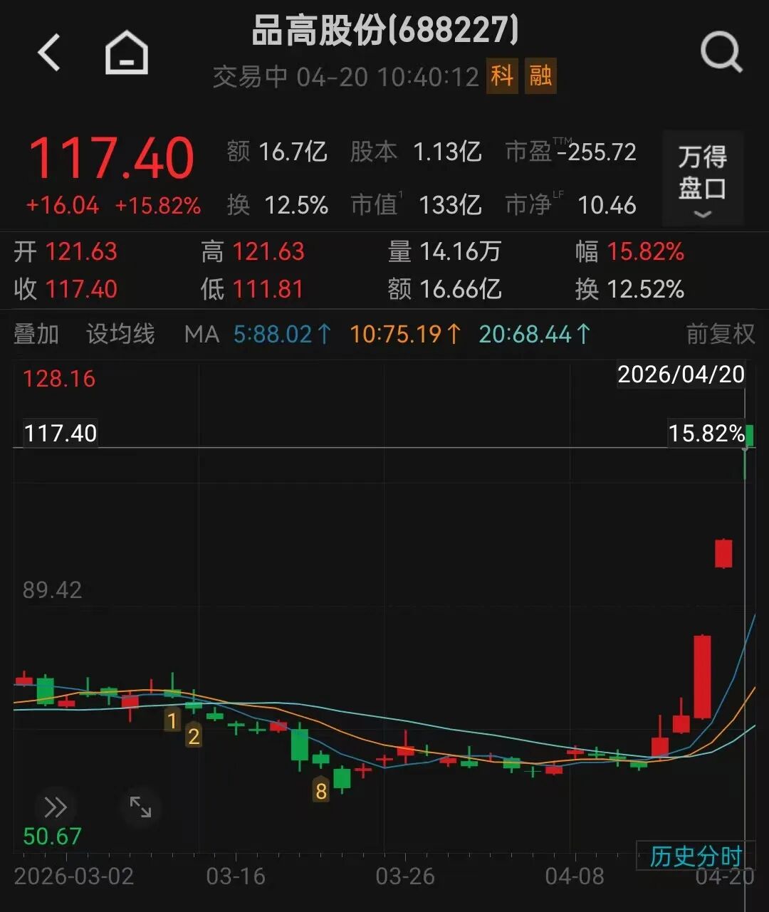 4月20日早盘,A股多只算力芯片概念股飘红。品高股份(688227.SH)涨超15%,该股此前两个交易日都20%涨停。翱捷科技(688220.SH)涨超14%,该股此前六个交易日已累计上涨14.68%。仁东控股(002647.SZ)涨停,海光信息(688041.SH)、寒武纪(688256.SH)股价也飘红。