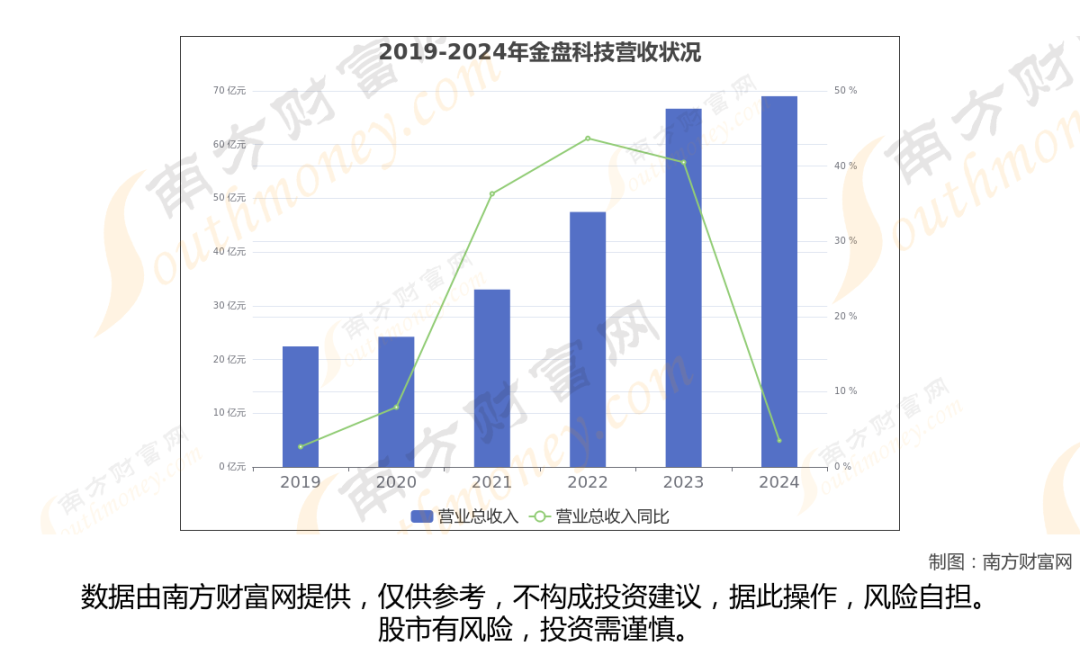 金盘科技2024年数据显示(如上图),公司2024年营业收入69.01亿,同比增长3.5%,近五年复合年增长率29.91%。