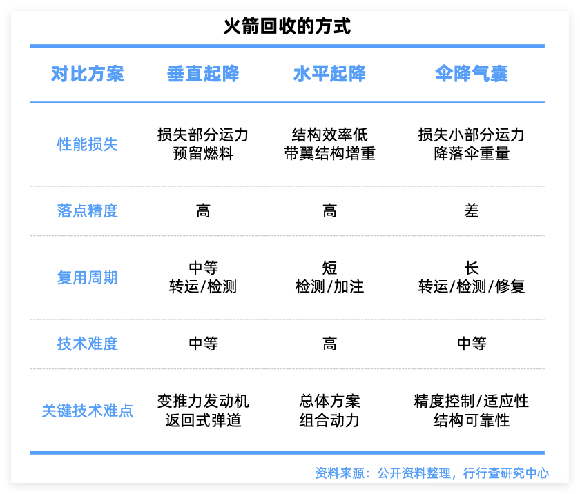 美国SpaceX的垂直起降技术最为成熟,中国和日本等国家也在垂直起降或其他回收方式上积极探索。