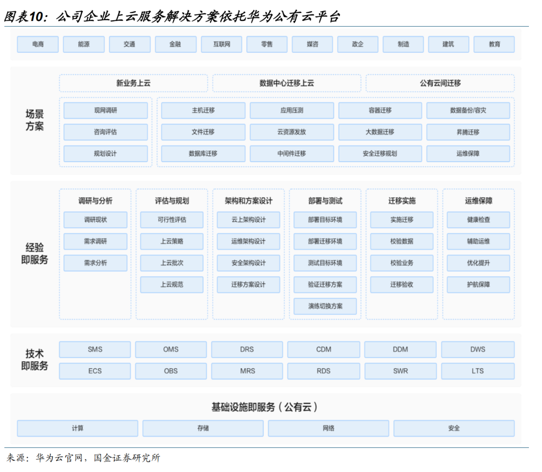 华为云合作持续深化,海内外标杆落地,公司已全面嵌入华为ICT核心体系。2017年公司与与华为云签署“同舟共济”合作协议,坚定实施“销服一体化、咨询与集成”两大战略,开启深度协同的战略合作新阶段,通过多项华为云核心能力认证,成为华为云首个CTSP伙伴,贡献海内外多个项目成功案例。国内华为云合作纵深发展,公司与华为云助力广州金翔达国际旅行社有限公司完成将13套业务系统及周边系统的数据全部迁移至华为云上,提高商旅航空业务的运行效率30%,缩短交付周期20%,开创商旅航空业务类型客户上云迁移先河;在销售领域,公司在全国多个重点区域城市部署“销售 解决方案 交付”专业团队,辐射开拓长三角、珠三角、京津冀等多个区域,在华为云生态大会获得“2024卓越解决方案提供商”。海外华为云合作不断外延,公司参与“云上思路,AI上华为云”出海伙伴计划,签订了中东中亚合作启动备忘录、亚太区联合商业计划,并加入了“中东中亚中资联盟”及“数智融合生态联盟”,与华为云联合落地北非、阿尔及利亚HCSCBP云平台,实现亚太、中东运营商云突破。