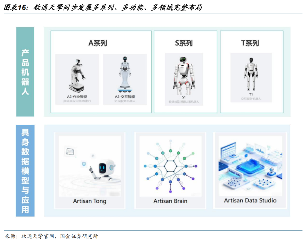 公司加速推进产品化与场景落地,具身智能机器人成为智能终端战略核心之一。公司以软通天擎、软通天汇为核心载体,定位软硬一体具身智能解决方案提供商,搭建起结合人形机器人、复合机器人的产品服务全链条覆盖,推出天鹤 C1 科研教育机型、天擎系列工业巡检机型以及天汇系列管廊巡检、建筑测量等特种复合机器人,部分产品已在无锡智能工厂实现小批量试用,实现多系列(A/S/T系列)、多功能、多领域同步发展。技术层面,公司依托自研星云具身智能计算平台、天鹤操作系统及天璇 MaaS 大模型平台,持续强化具身决策、运动控制与精密操作能力,核心零部件国产化水平同步提升,充分依托国内完整的具身机器人量产链条优势,在成本控制与场景适配能力上构建竞争力,当前已形成从技术研发、产品设计到量产交付、场景落地的全链条布局。