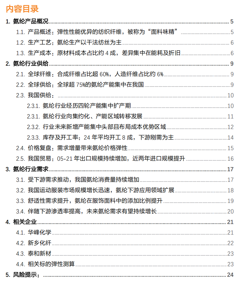 本报告相关测算以实际发生数为准:氨纶产品涨价幅度受行业供需关系影响,相关行业成本与毛利以实际发生数为准。