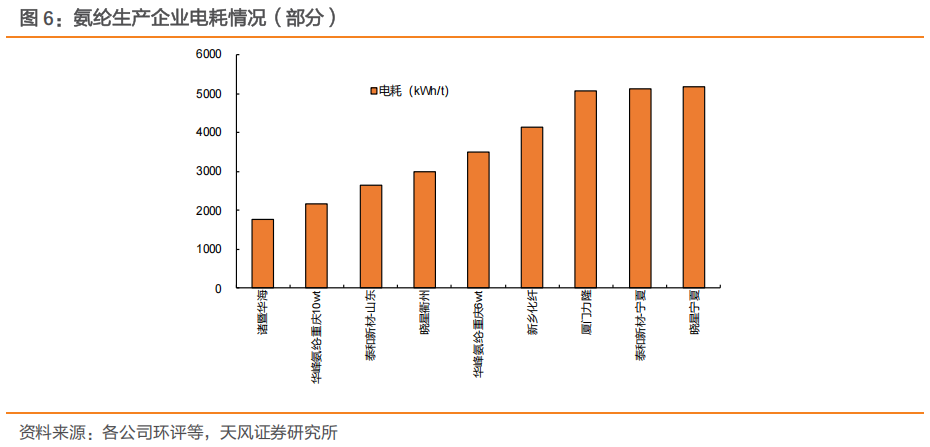除诸暨华海外,在其余已投产的项目中,华峰化学在重庆的10万吨氨纶电耗水平较低,且能源资源丰富,靠近重庆涪陵页岩气田,具备能源采购成本优势。同样的,宁夏宁东基地的氨纶项目也具备煤炭资源优势。