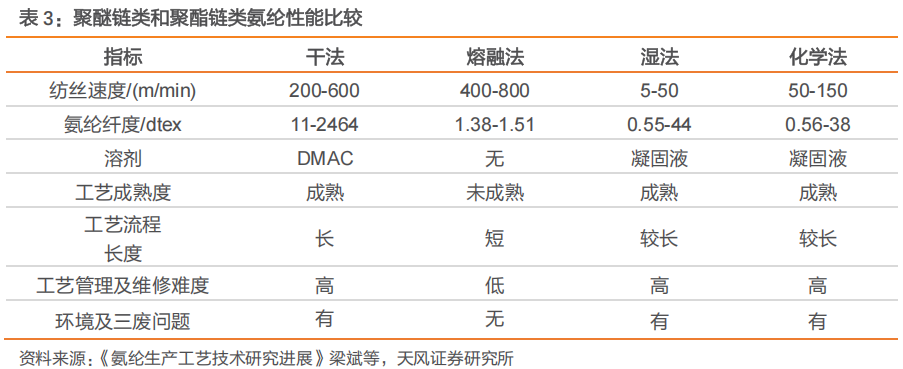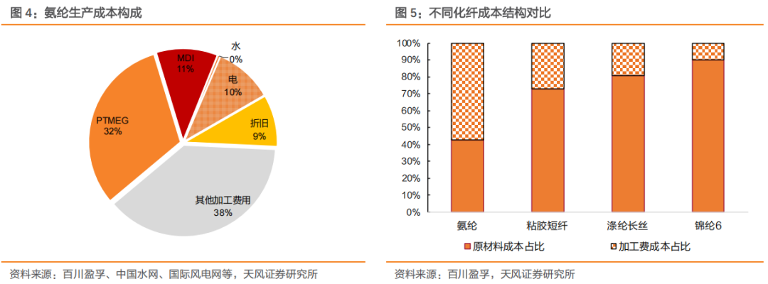 与其他化学纤维(粘胶、涤纶等)相比,氨纶的原材料成本占比较低,非原料成本的控制是生产企业成本壁垒的主要来源。