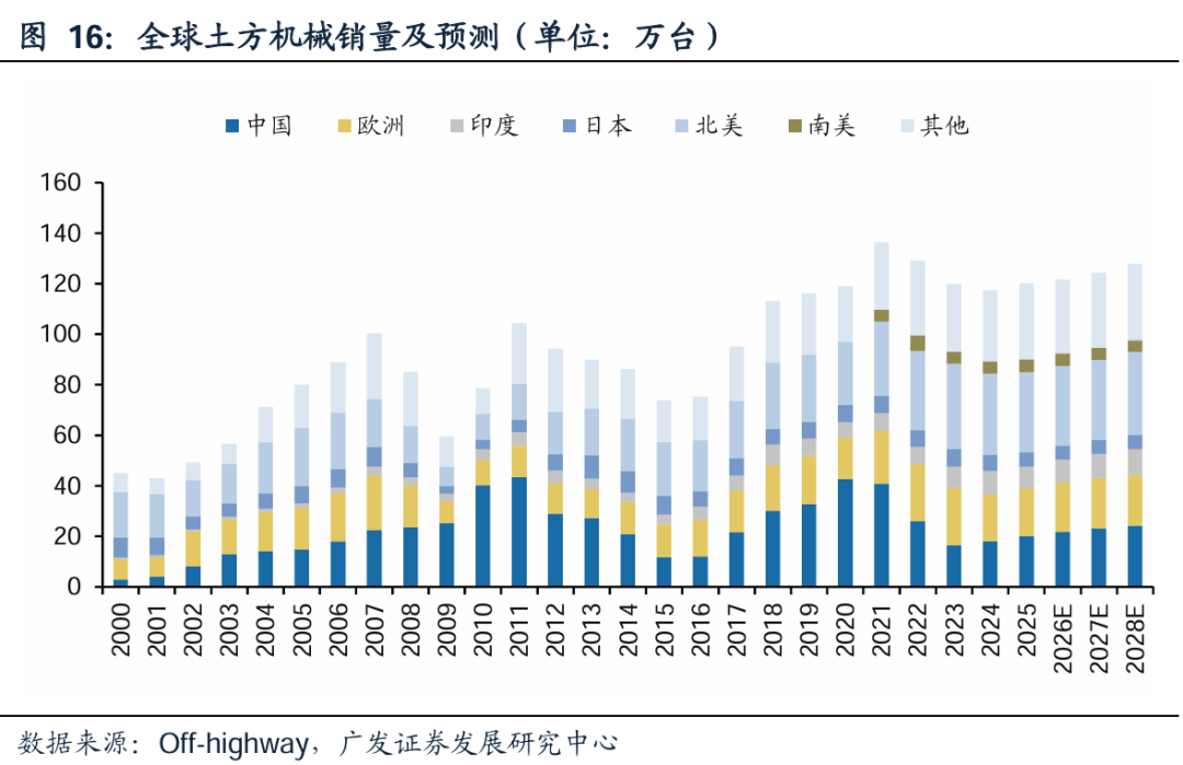 整体看,26年预计全球土方机械销量同比 1%,继续保持增长趋势;远期看,预计到2030年北美、印度的土方机械销量将创历史新高。