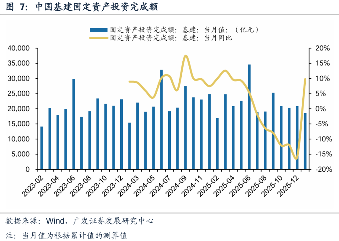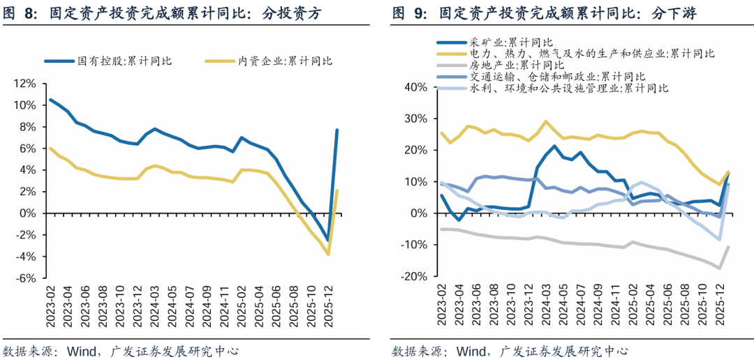 中国基建固定资产投资完成额止跌回升。根据Wind,26年1-2月中国基建固定资产投资完成额为18581亿元,同比 10%,分主题看,国油控股依然为中心;分下游看,电力/热力/燃气/水生产、采矿业景气度较高。