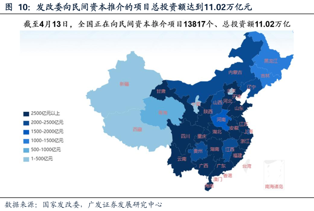 根据发改委官网,截至4月13日,全国正在向民间资本推介项目13817个、总投资额11.02万亿。