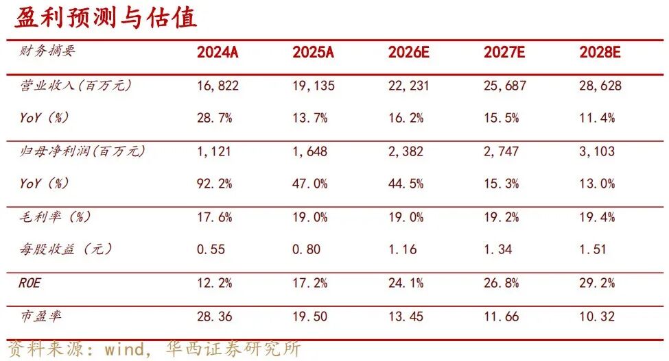 公司发布2025年年度报告及2026一季报业绩预告:2025年实现营收191.35亿元、同比增长13.75%,归母净利16.48亿元、同比增长46.95%,扣非后归母净利16.31亿元,同比增长48.88%;单季度看,2025Q4实现营收45.78亿元,同比-0.56%,归母净利润0.71亿元,同比-68.13%。现金流方面,2025年公司经营活动产生的现金流量净额28.76亿元,同比提升(系业务规模增长致销售商品收到的现金增长所致)。分红方面,拟每10股派发现金红利5元(含税),派息率62.31%。