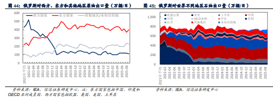 2025年9月,俄罗斯对印度石油出口数量为160万桶/日,环 20万桶/日,较冲突前 150万桶/日。