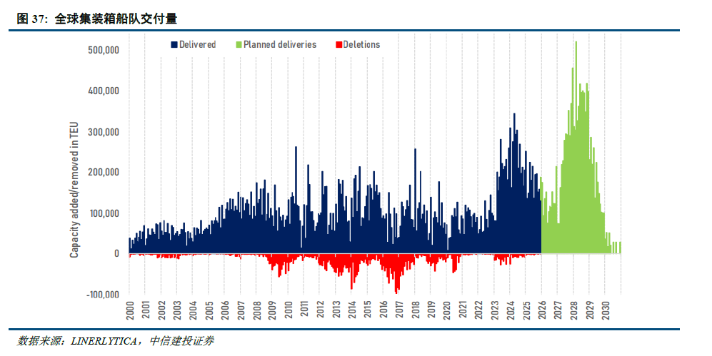 (2)2026年集装箱运力交付仅有150万TEU,名义运力增速约为3.7%