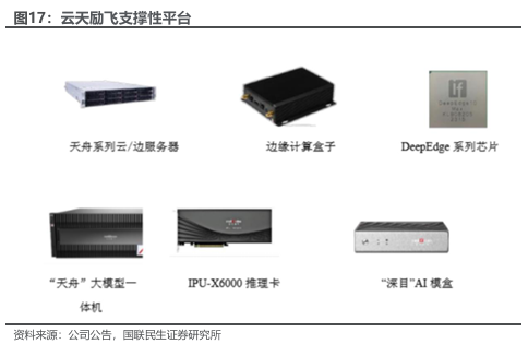 智能硬件产品推动公司软硬一体销售。基于公司自研“云天天书”大模型和神经网络处理器,打造面向各类边缘AI场景的各类硬件设备并对外销售,包括 AI芯片、天舟系列云边服务器、边缘计算盒子、“深目” AI模盒 、X6000推理加速卡,以及基于X6000加速卡打造的推理服务器等。