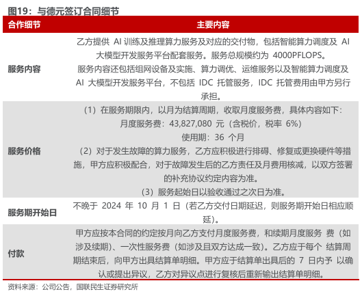 与德元签订合同项目,大额订单补充现金流。2024年,公司与德元方惠就德元向公司购买 AI训练及推理算力服务达成框架安排。在正式提供服务后三年内,公司预计将获取金额约为人民币16亿元的AI算力服务收入。公司全资子公司励飞科技与德元方惠于2024年7月初签署合作正式合同,目前处于合同履约中,将对公司经营业绩产生积极影响。