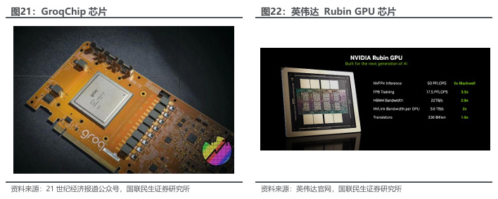 英伟达收购Groq, 推出RubinGPU适配推理提升效率,推理市场重要性提升至战略地位。25年年底,英伟达以200亿美元(约合1402亿元人民币)现金收购Groq资产,完成了一次 “人才 技术收购”:拿下 Groq 大部分研发团队,并获得其用于AI推理的LPU数据流引擎底层技术授权。公司后续推出的Rubin GPU为实现优化完整的执行路径,将功耗、带宽和内存高效转化为tokens进行设计,从计算密度、内存带宽和机架级通信三个维度改进架构。现代 AI 工作负载包括推理、多专家模型(MoE)、长上下文推理和强化学习等领域,推理在工作负载的占比比例提升,为迎接推市场的快速增量,英伟达进行重量并购并推出相对应产品,推理市场重要性提升至战略地位。