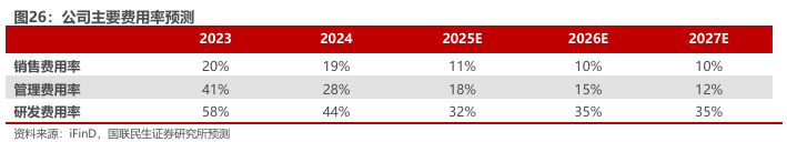 主要费用率:1)销售费用率:随着公司营收规模扩张叠加公司企业级、消费级、行业级三方向业务销售渠道建设稳定,公司销售费用率有望合理收敛,预计2025-2027年销售费用率分别为11%、10%、10%;2)管理费用率:公司前期管理费用率较高涉及上市费用及股权激励费用,未来营收规模扩张及无相关费用影响,管理费用率有望合理收敛,预计2025-2027年管理费用率分别为18%、15%、12%。3)研发费用率:公司作为AI芯片和算法公司,研发投入需求较大。当前,其正全力转向推理市场,研发资源高度集中于AI推理芯片。尽管营收规模快速增长或使2025年研发费用率暂时被摊薄,但随着在推理芯片上的投入持续加大,研发费用率预计将回升并维持在较高水平,费用绝对值维持增长态势。预计2025-2027年,公司研发费用率分别为32%、35%和35%。