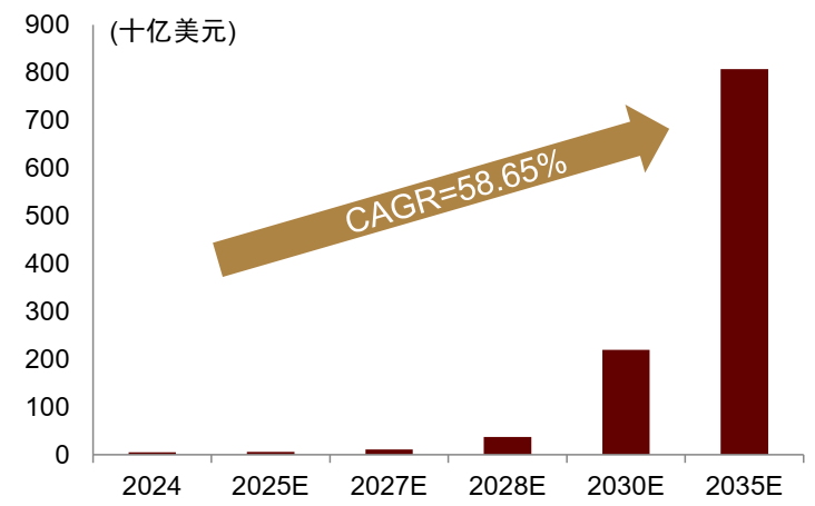 量子计算作为新一轮科技革命与产业变革的前沿方向,正加速从实验验证走向商业化应用。随着全球科技巨头(谷歌、IBM、微软等)不断突破量子比特规模与纠错精度,中国在“祖冲之”“九章”等原型机实现多点超越,ICV预计全球量子计算市场规模在2024–2035年由50亿美元增长至8,000亿美元以上,CAGR超55%。其中,硬件环节先行受益,测控系统、稀释制冷机等核心设备有望早日进入量产周期。我们判断,量子计算正处于由科研突破向商业落地的关键拐点,硬件环节或将率先实现产业化突破。