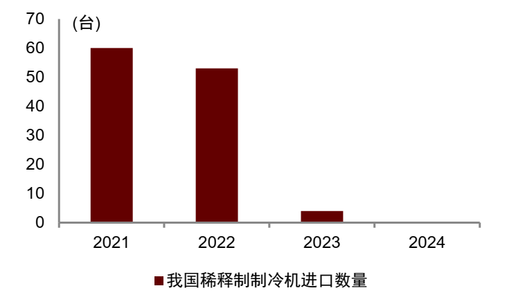 图表22:2021-2024年我国稀释制冷机进口数量