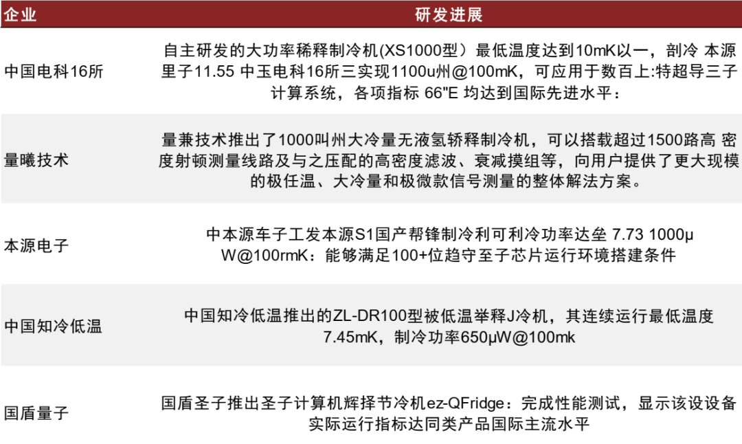 图表24:国内稀释制冷机企业研发进度