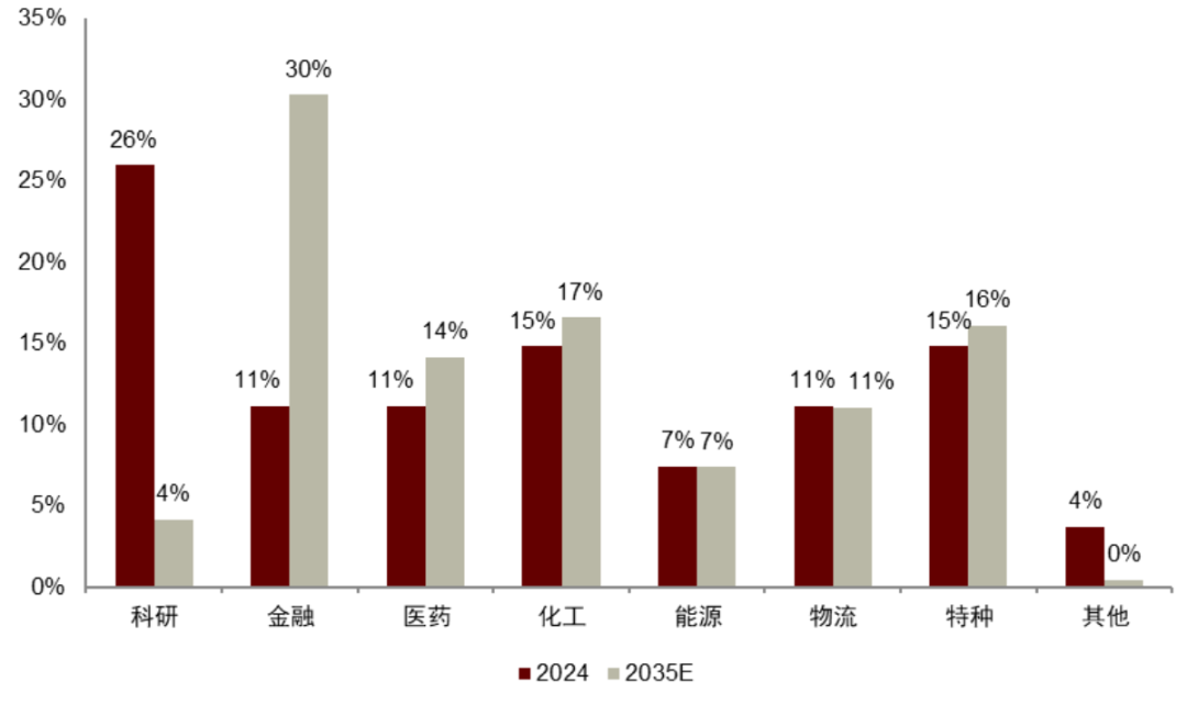 图表28:2024年与2035年全球量子计算下游应用规模占比