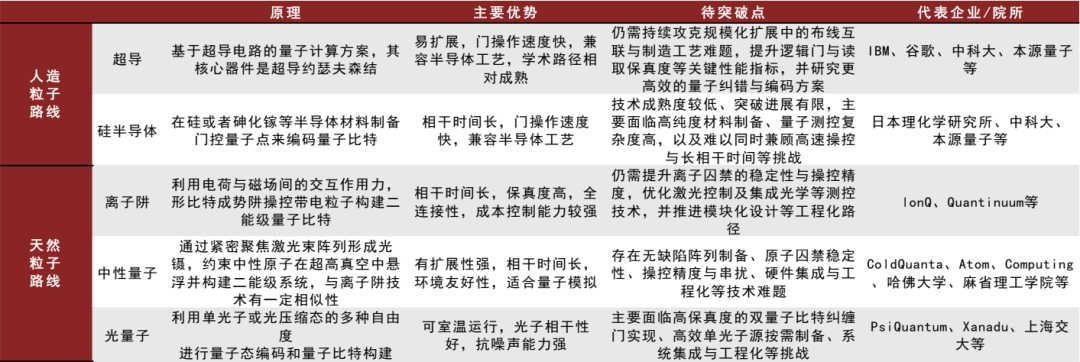 技术路线:多路径并行推进,超导量子产业化进展领先