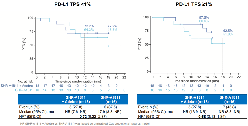 ● TPS ≥1%人群:12个月PFS率分别为 87.5% vs 60.6%,HR=0.58(0.18-1.84)