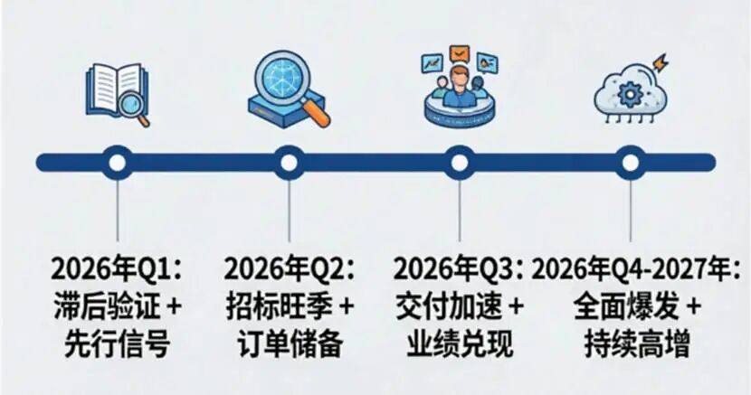到了这阶段,2026年Q2的新订单进入交付高峰,业绩进入加速兑现阶段。