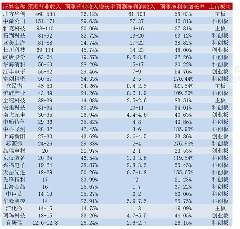 ✅净利增速50%-100%:共6家,包括中微公司、华海清科等中坚力量;