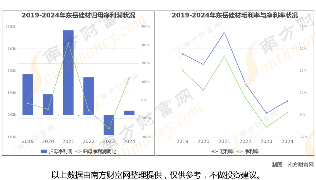 东岳硅材年报数据显示(如上图),2024年实现营业总收入51.51亿,同比增长7.27%,近5年复合年增长率19.77%。