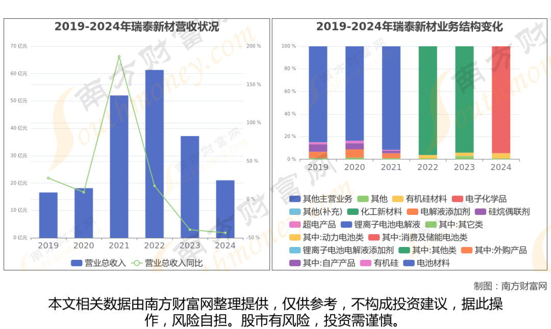 瑞泰新材于2022年6月17日在深圳证券交易所上市,公司主营业务为主要从事电池材料以及有机硅等化工新材料的研发、生产和销售。