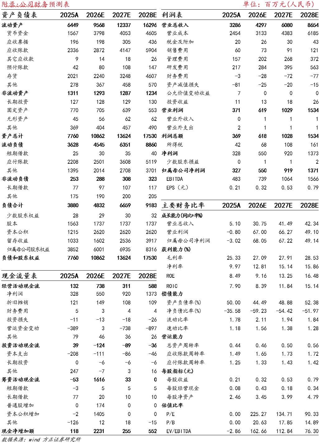 盈利预测:公司是国内少数具备宇航电源系统级整体解决方案能力的企业之一,产品全面配套载人航天工程、深空探测、北斗导航、低轨卫星星座等国家重大航天工程,商业航天各类型航天器平台,以及太阳能无人机、飞艇等各类临近空间飞行器,是国内宇航电源领域的核心供应商,将受益于低轨卫星的批量招标以及国家对载人登月、载人航天等重大工程的加速布局。预计公司2026-2028年营收分别为42.97/60.8/86.54亿元;归母净利润为5.5/9.19/13.71亿元;PE为225/135/90。