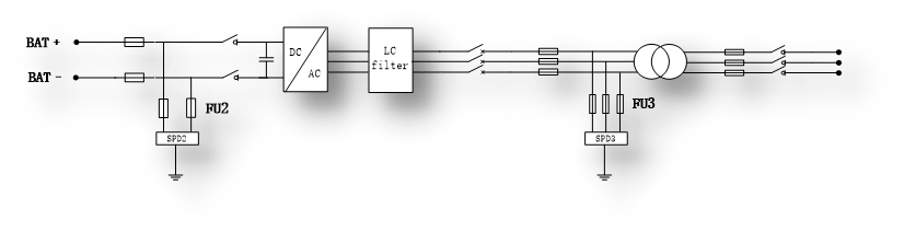 户外储能系统需要配备二级防雷装置。根据GB/T 18802.12-2014要求,SPD需配有外部和内部断开装置,以便SPD在出现故障时提供全面安全防护。