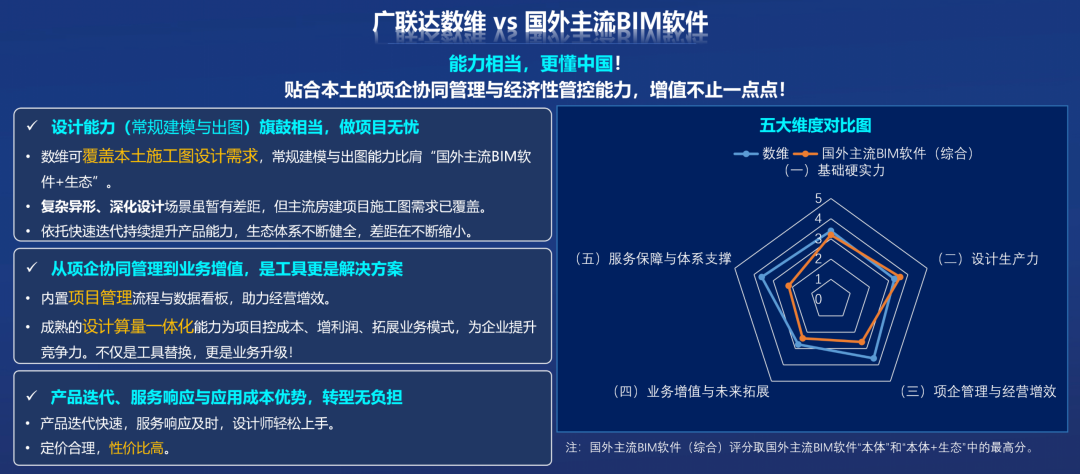自主可控BIM软件近年来发展日趋成熟,广联达数维设计软件已经具备替代国外主流BIM软件能力。该软件在满足国内工程勘察设计主流需求的同时,其项企协同管理与经济性管控能力,更是为企业提供了提升竞争力、实现利润增量的“中国方案”。