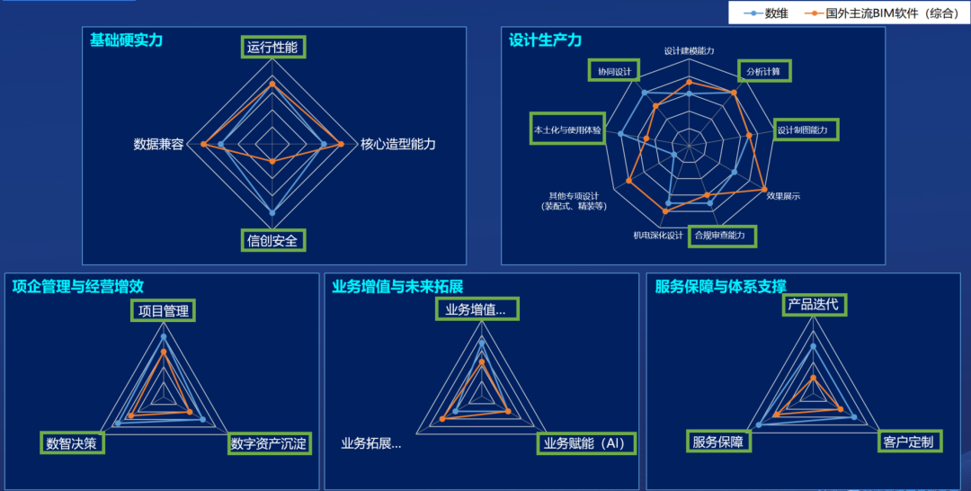 从数维与国外主流BIM软件能力的五大维度对比来看,数维在常规建模与出图能力上已比肩“国外主流BIM软件 生态”,能够覆盖住宅、学校、商业、办公、医院、产业园区等主流房建项目的施工图设计需求。更重要的是,数维内置的项目管理流程与数据看板,能够帮助设计企业实现经营增效。成熟的设计算量一体化能力,让设计成果直接用于成本测算,为企业控成本、增利润。在服务响应、应用成本方面,数维响应更快,同时定价合理、性价比优势显著。在自主可控方面,数维已通过国家泰尔实验室国产化评估最高等级,全面适配国产芯片、操作系统,可确保数据安全自主可控。将数维融入企业数字化转型,不仅是软件工具国产化替代,更是业务模式升级与核心竞争力重塑。